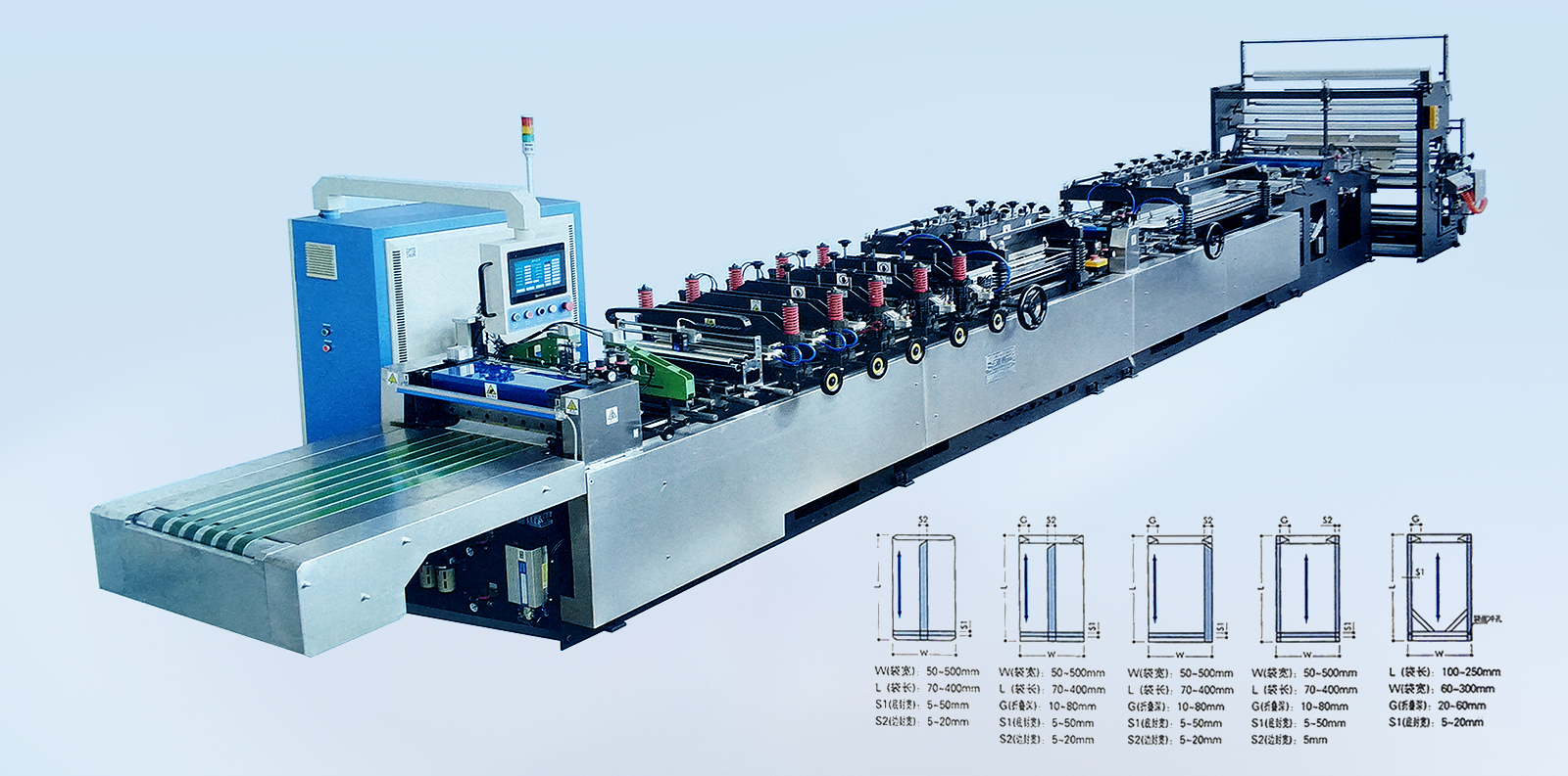 YSZD-400B Ⅱ中封、三邊封、四邊封高速全自動制袋機 YSZD-300/400/500ZF中封、側封、四邊封高速全自動制袋機 YSZD-500ZF中封、側封、四邊封高速全自動制袋機 YSZD-500/600/700/800/1000H三邊封高速全自動制袋機 YSZD-600C無接縫站立袋三邊封、站立袋高速全自動制袋機 YSZD-500HK三邊封、站立袋、拉鏈袋、無接縫站立拉鏈袋、儲料架高速全自動制袋機 YSZD-600HB三邊封、站立袋、拉鏈袋高速全自動制袋機 YSZD-600HK三邊封、站立袋、拉鏈袋、無接縫站立拉鏈袋高速全自動制袋機 YSZD-600HK Ⅰ上下圖案跟蹤三邊封、站立袋、拉鏈袋、無接縫站立拉鏈袋高速全自動制袋機 YSZD-600HK Ⅱ CCD視覺定位裁切三邊封、站立袋、拉鏈袋、無接縫站立拉鏈袋高速全自動制袋機 YSZD-800HK三邊封、站立袋、拉鏈袋、無接縫站立拉鏈袋高速全自動制袋機